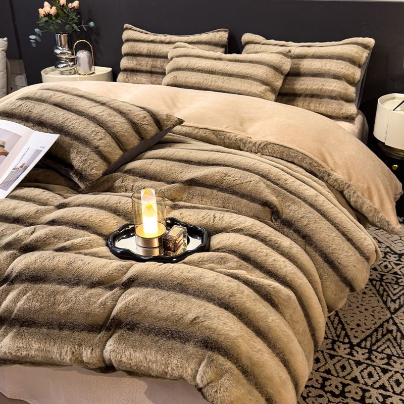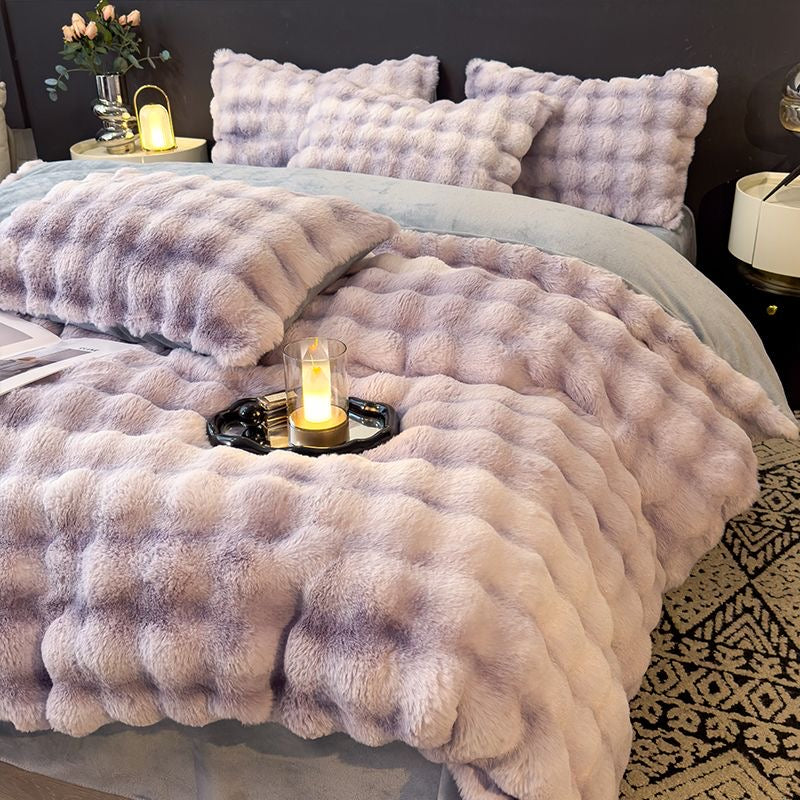 Elite Rabbit Fur Plush Thickened Milk Fleece Sheets & Duvet Cover Bed Set