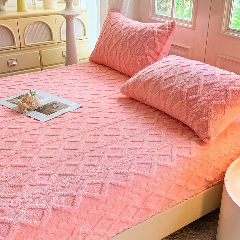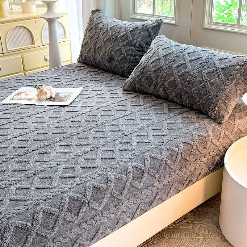 Embossed Geometric Pattern Ultra Soft Warm Milk Velvet Fitted Mattress