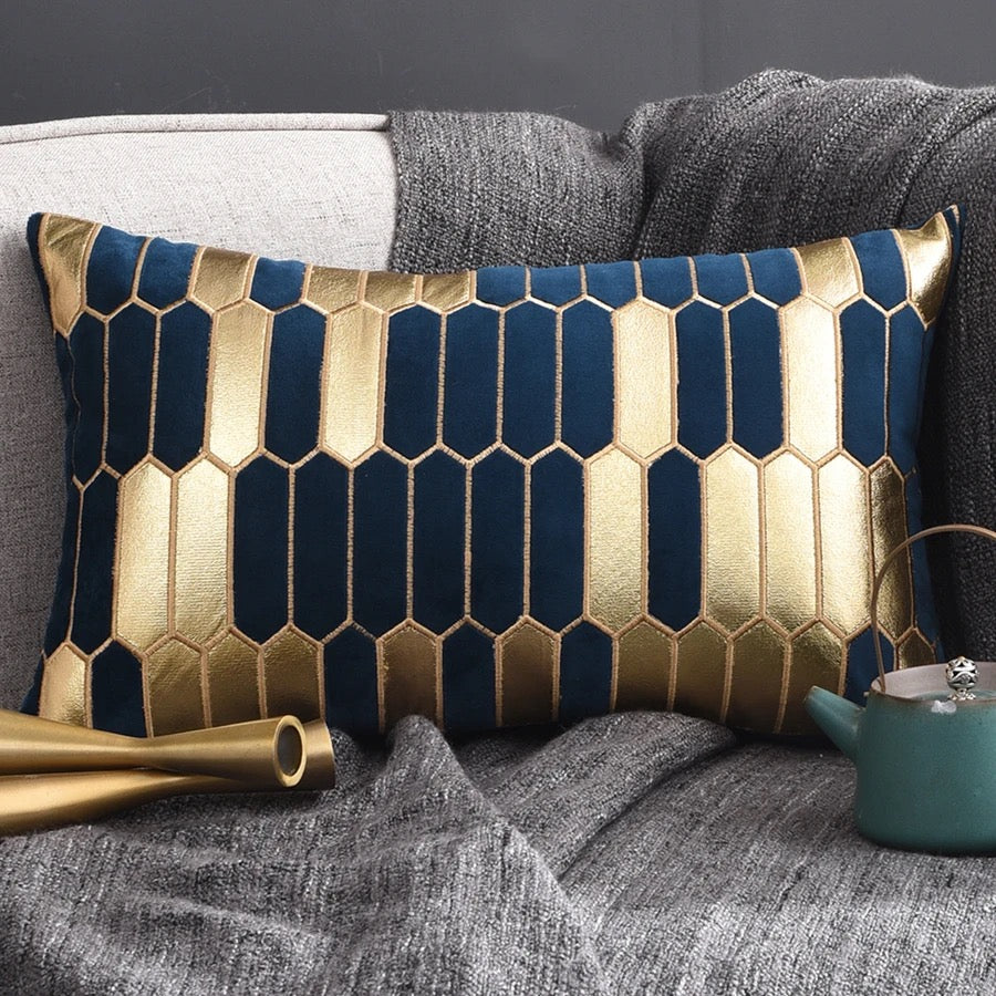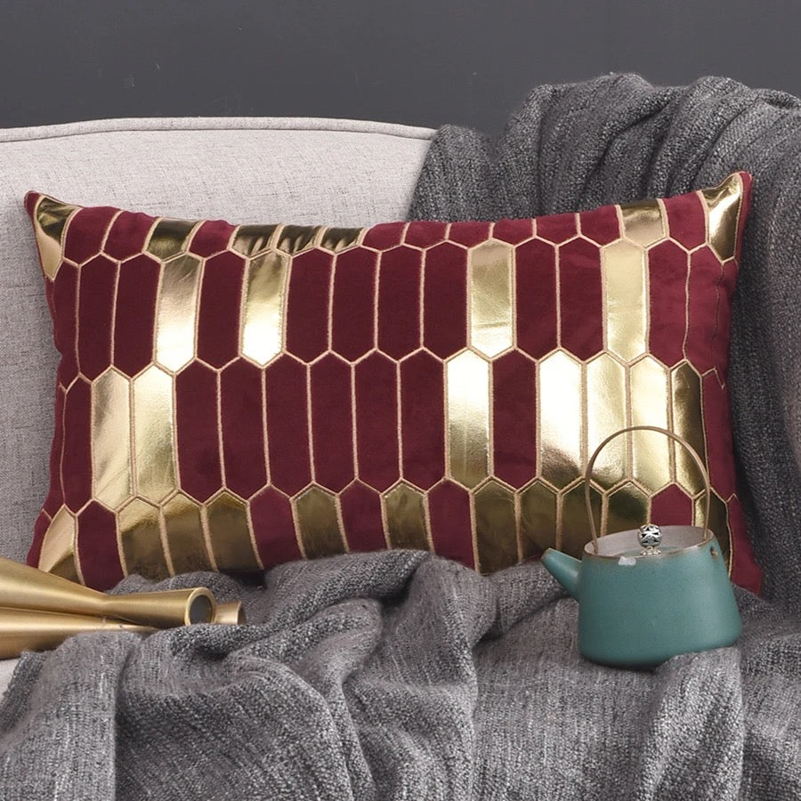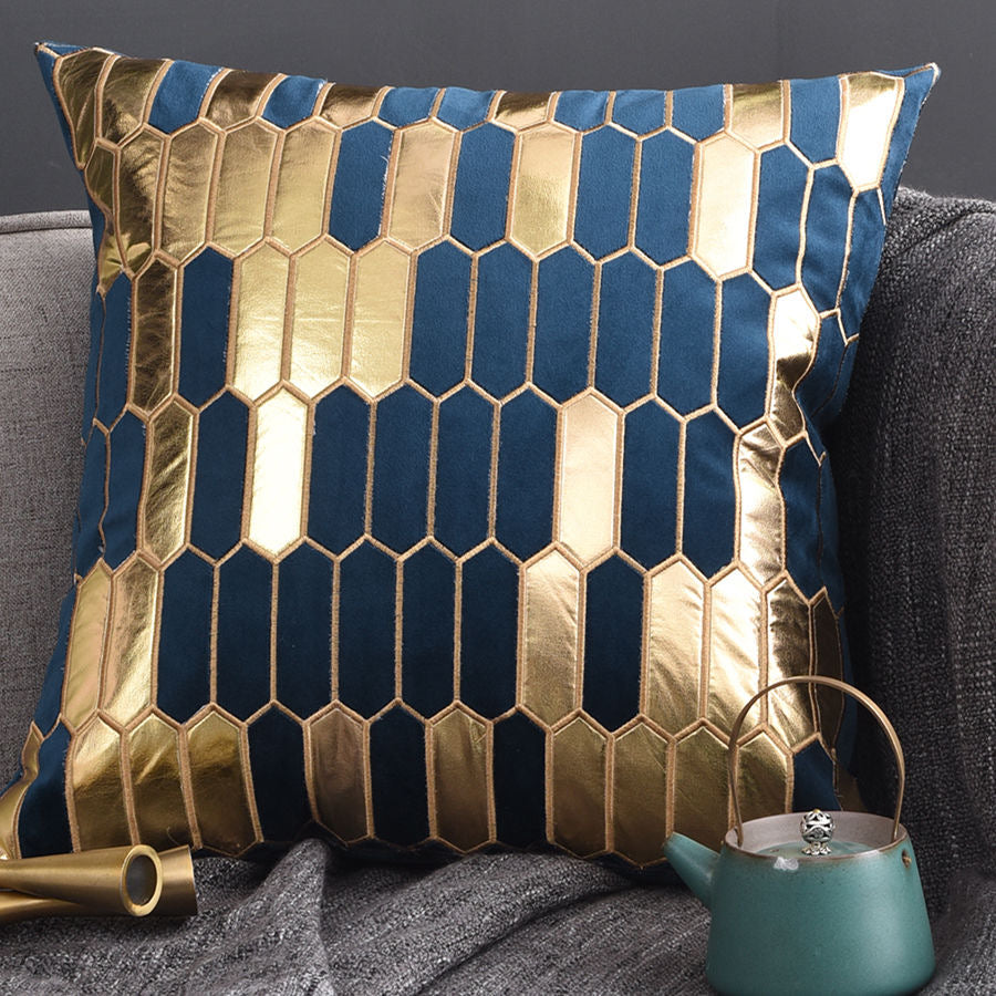 Geometric Luxury Decorative Embroidered Velvet Gold Leather Striped Pillow Cover for Couch Living Room Bedroom