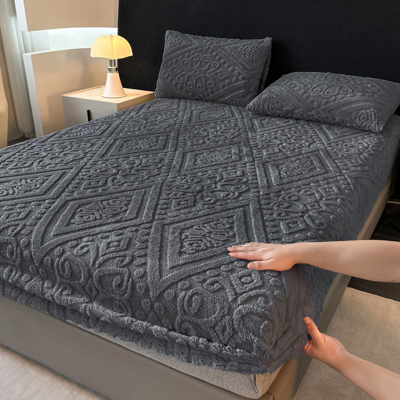 Coral Fleece Lace Trim Winter Ultra-Warm Fitted Sheet