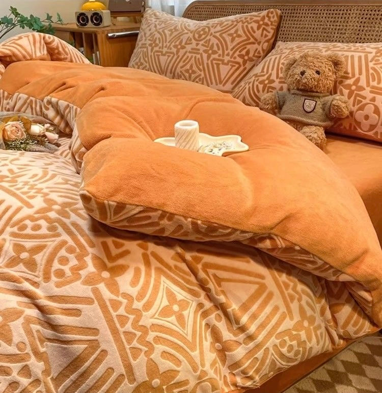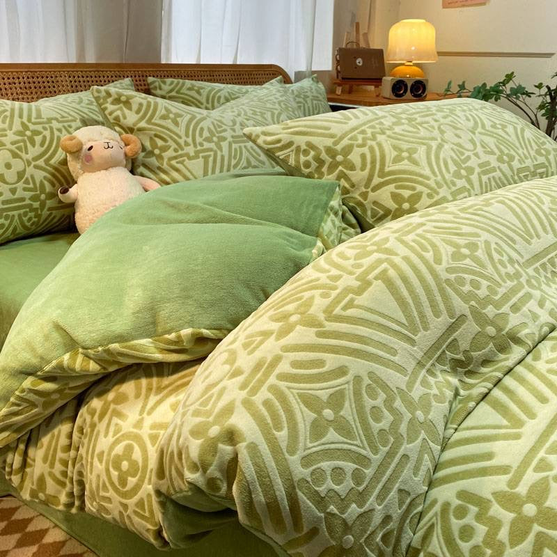 Luxury Embossed Ultra Warm Plush Fleece Double-Sided Milk Velvet Bedding Set