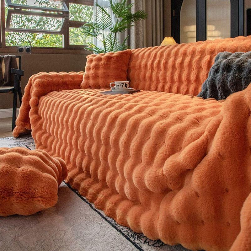 - Easy to Clean: The fully removable, machine-washable design of bubble style sofa cover makes rabbit plush sofa cover cleaning simple and efficient. Simply wash the nordic sofa slipcovers plush regularly to keep your sofa looking fresh and new, eliminating the hassle of frequent professional cleanings. Perfect for households with pets, plush sofa cover effortlessly handles unexpected stains, safeguarding every cozy moment at home.